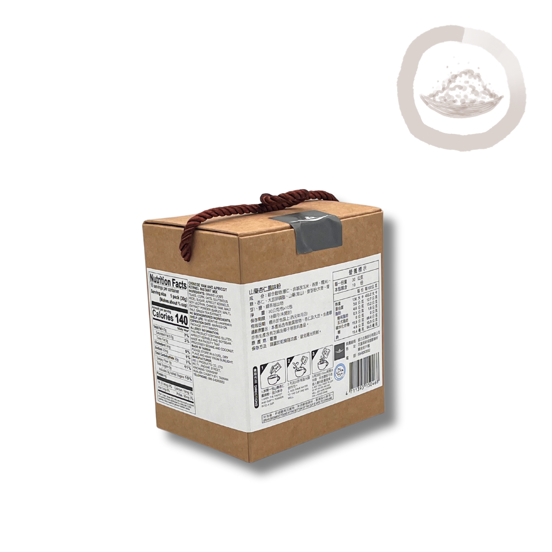 Ingredients: Grains (Job’s Tears, Corn, Oats, Glutinous Rice), Sugar, Apricot Kernels, Soy Lecithin, Chinese Yam, Malt Extract Powder (Barley, Malt), Salt, Green Tea Extract
